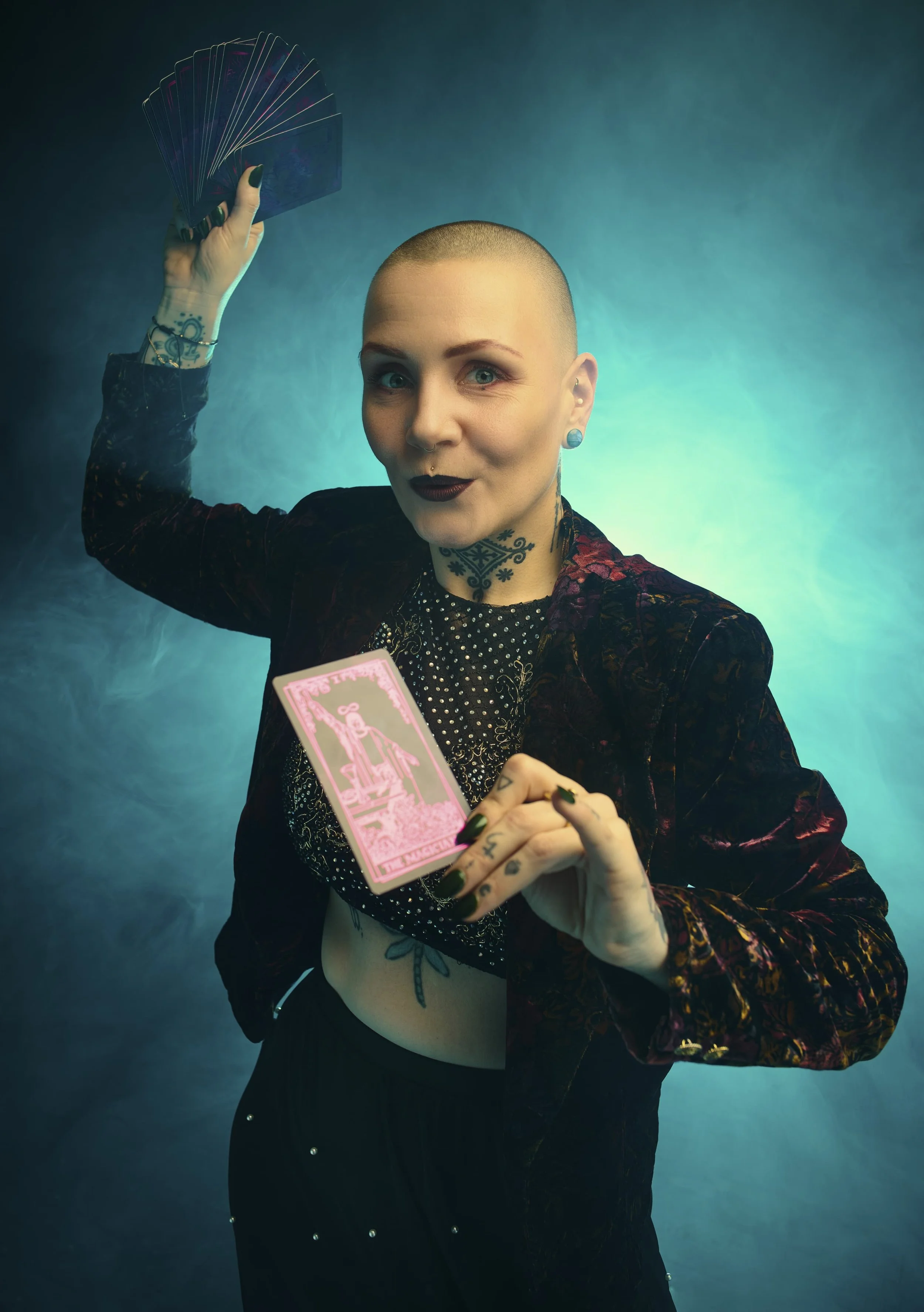Welcome to my Cosmic Chaos. Here, anger turns into courage, chaos into clarity, and vulnerability into strength. With tarot, life coaching, and relaxation training, I help you leave your comfort zone, rediscover yourself and your resources, and consciously shape your path. Whether it's personal development, guidance with tarot and astrology as a reflection tool, good conversations, or simply relaxation, I hold the space for you. Privately in 1:1 sessions, in groups and teams, or at events, discover my offerings and let yourself or your guests indulge in some truly magical, emphatic and entertaining moments.